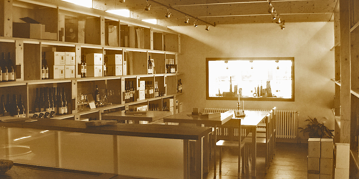 Nachdem die Weine der Bauherrschaft immer häufiger vor Ort gekauft wurden, bzw. der Wunsch nach Weinproben immer häufiger geäußert wurde, sollte auf dem bestehenden Betriebshof im räumlichen Zusammenhang mit der Abfüllhalle bzw. dem Weinlager ein Verkaufs- und Degustationsraum errichtet werden, der der gestiegenen Qualität der Weine und der überregionalen Kundschaft entspricht.