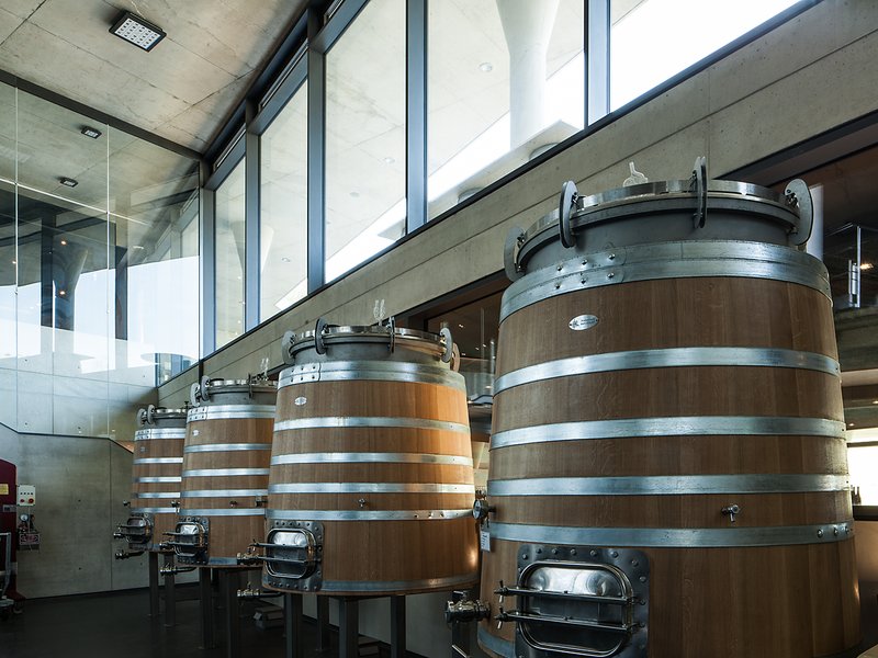 Mit dem Eingraben des Weingutes in die Erde entsteht das Energiekonzept von selbst durch die Natur. Die nach Norden ausgerichtete Lage des Grundstücks begünstigt diesen Effekt. Die natürliche Isolation des Erdreiches sorgt für ein gleich bleibendes Klima und die gewünschte konstante Temperatur, die zur Entwicklung und Lagerung des Weines optimale Voraussetzungen bietet. Dies ist die eigentliche entwurfsspezifische Grundlage für das energiebewusste und nachhaltige Konzept. Natürlich erfordert der komplexe Produktionsprozess in einem modernen Weingut eine umfangreiche TGA- und Steuerungstechnik zur Weinbereitung mit Wärme- und Kälteinstallationen für die Prozesssteuerung der unterschiedlichsten Weinbereitungsstufen. Eine besondere Herausforderung war hierbei die Aufgabe, in den Produktionsprozess ein exklusives Restaurant zu integrieren, von welchem aus man die gesamte Weinherstellung hautnah miterleben kann. Darüber hinaus werden die Produktionsflächen, welche lediglich für ca. zwei Monate im Jahr zur Weinbereitung genutzt werden, in der verbleibenden Zeit als multifunktionelle Eventlächen mit allen hierzu notwendigen Anforderungen und Einrichtungen genutzt. Die besondere Herausforderung an die Versorgung der technischen Einrichtungen für die unterschiedlichsten Nutzungsanforderungen wurde durch den Bau eines 160 m langen Installationsganges entlang des gesamten Gebäudes gelöst. Auf eine Höhe von bis zu 20 m kann durch diesen Versorgungsgang nahezu jede Stelle des Gebäudes erreicht werden, um die dort notwendigen technischen Versorgungen sicherstellen zu können. Gleichzeitig überträgt dieser Gang das gleich bleibende Klima des angrenzenden Berginnern in die Lagerräume des Weingutes.