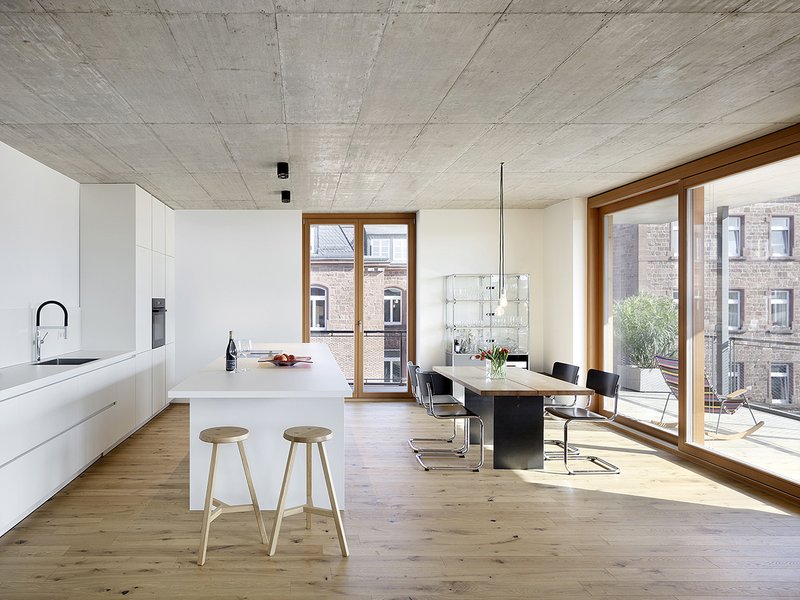 Eine Bürofläche im Erdgeschoss wird von Motorlab Architekten selbst genutzt. Die zweite Bürofläche nutzt die Motor Real Estate GmbH. Diese Mischung und Vielfalt machen Evergreen zu einem allen Generationen offen stehenden Haus.