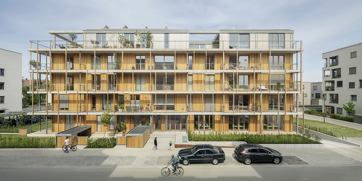 Gleichzeitig steht Evergreen für ein nachhaltiges und „grünes“ Energiekonzept: Der hohe Anteil regenerativer Energiequellen aus Sonnen- und Erdwärme bedeutet aktiven Umweltschutz und signifikant niedrige Betriebskosten. Realisiert wurde Evergreen von dem Mannheimer Unternehmen Motor Real Estate GmbH, das außergerwöhnliche Wohngebäude und Gewerbeobjekte mit hohem architektonischen Anspruch entwickelt. Urban und Grün. Diese Spannung charakterisiert nicht nur das Leben auf Turley, sie ist auch das Fundament der architektonischen Idee von Evergreen. Das zeigt sich bereits in der Bauweise, die ein schlankes Beton-Tragwerk mit warmem, die Atmosphäre prägendem Holz zu einem luftigen „Wohnregal“ verbindet. Ein zentraler Treppenhauskern, in den die Aufzugsanlage integriert ist, wird mit massiven Betondecken und hochgedämmten Außenwand-Elementen aus Holz kombiniert. Das Gebäude bietet aufgrund seiner besonderen Bauart große räumliche Vielfalt - in Bezug auf die Wohnungstypen, aber auch die Fläche, die Zuschnitte und die Anzahl von Zimmern. Charakteristisch für Evergreen ist zudem die enge Verbindung von Wohnen und Natur: Große Glasflächen und ausladende Balkone rund um das Gebäude öffnen sich zum quartiersprägenden Grün aus Gärten, altem Baumbestand und üppigen Parkflächen.