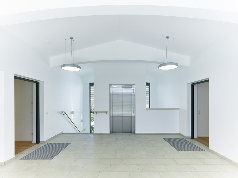 Der Zugang zum Gebäude sowie alle anderen Übergänge sind schwellenlos hergestellt. Die Wohnungseingangstüren sind zusätzlich mit Freilauftürschließern ausgestattet, um eine einfache Öffnung zu ermöglichen.