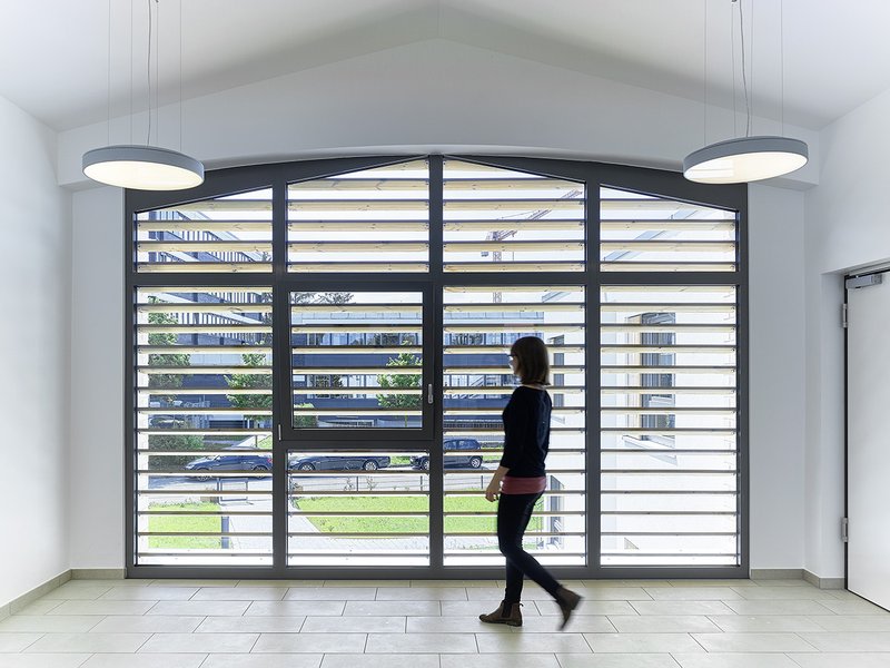 Die Nutzung des natürlichen Lichts hat einen hohen Stellenwert und konnte über den Einsatz von großen Glasflächen erzielt werden. Die bauliche Verschattung wurde auf den Stand der Sonne in den verschiedenen Jahreszeiten abgestimmt. An sinnvollen Stellen wurden zudem Oberlichter mit Abdunkelung eingebaut.
