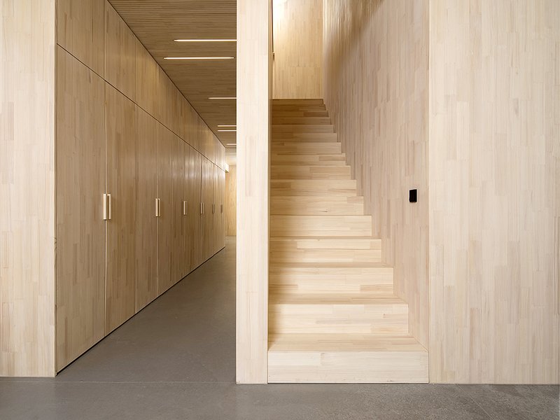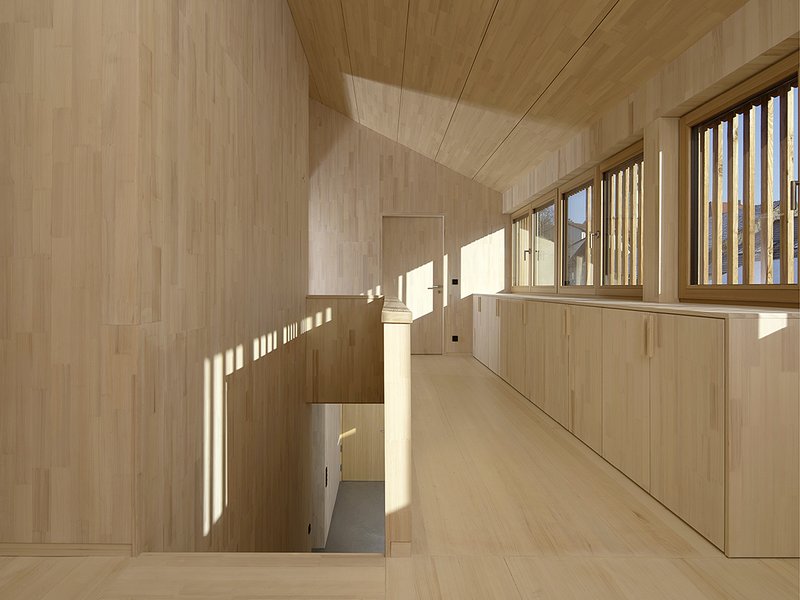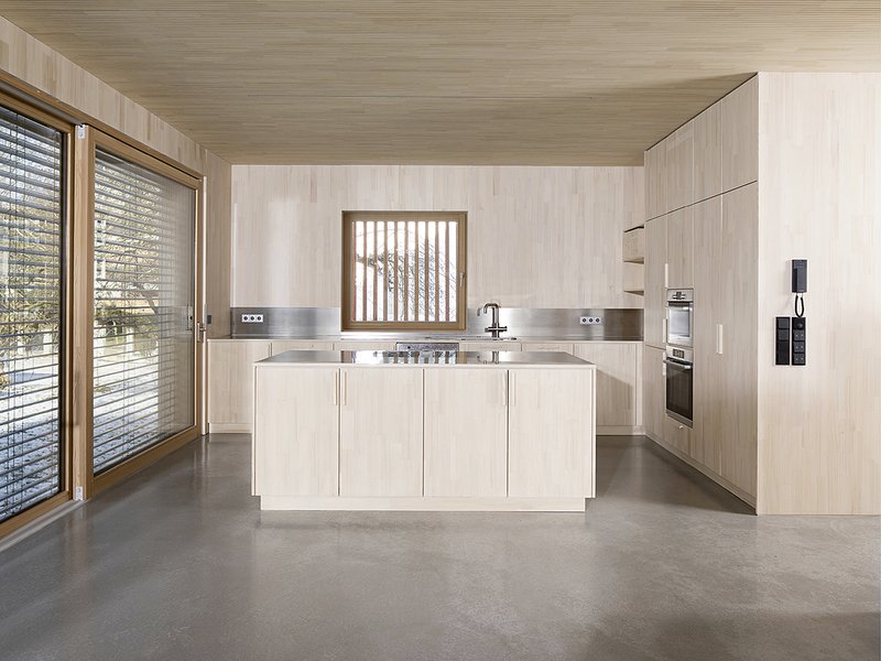 Die Einbaumöbel und die Küche wurden von den Architekten geplant und von einem Schreiner in Weißtanne ausgeführt. Die Ausführung betreute die Bauherrin. Den gesamten Bau- und Planungsprozess unterstützte das Bauherrenehepaar in hervorragender Weise und trug so in hohem Maß zum Gelingen des Projektes bei.