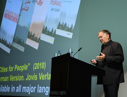 Der derzeit bekannteste internationale Stadtplaner Prof. Dr. Jan Gehl aus Kopenhagen ging der Frage nach: Wie können wir wieder Städte für die Menschen gestalten? Kritisch betrachtete er den Planungsansatz für autogerechte Städte und die Architekturmoderne, wo vielerorts Siedlungen mit freistehenden Gebäuden entstanden und dabei das Gespür für den menschlichen Maßstab verloren gegangen ist. Stadtplanung würde oft nur aus einer Helikopterperspektive heraus mit Blick von oben entwickelt, mit einem Ergebnis, das er provokant als Vogelkotstädte bezeichnete.