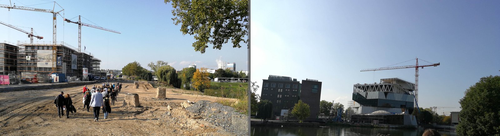 Den Auftakt zum Kongress bildeten bereits am Vortag geführte Rundgänge über das Baufeld der Bundesgartenschau Heilbronn 2019 und der sogenannten Stadtausstellung, die sich zentral auf dem Buga-Gelände befindet. Eine Besonderheit, denn diese Buga ist keine reine Gartenausstellung, sondern integriert zugleich ein Stadtentwicklungsprojekt. Diese Konstellation zog eine Vielzahl von Landschaftsarchitekten, Stadtplanerinnen und Architekten an, nicht nur um einen ersten Eindruck und Überblick über den Status des Baugeschehens zu gewinnen. Es lag auch besonderes Interesse darin, zu erfahren, wie der gesamte Prozess in dieser Form initiiert wurde und innerhalb von Stadtverwaltung, Planungsteam, Vertreter der Buga-Gesellschaft und unter Einbezug der Bevölkerung der Stadt funktioniert. Kompetente Zweiergespanne aus Stadtverwaltung und Buga-Planungsteam übernahmen die dreistündigen Führungen der Kleingruppen und gaben Einblick hinter die Kulissen. Nach kurzer Begrüßung durch Hanspeter Faas, Geschäftsführer der Bundesgartenschau Heilbronn 2019, und Peter Reinhardt, Geschäftsführer des Instituts Fortbildung Bau der AKBW als Mitveranstalter, starteten die Rundgänge. Am Abend bereicherte der Vortrag von Architekt Matthias Sauerbruch die Einstimmung auf den folgenden Kongresstag. Er gab einen Zwischenbericht über den Status zum Bau der Lernlandschaft Experimenta II im Kontext von Funktion und Form ab, dem das Plenum im voll besetzten Universum Kino gespannt folgte.