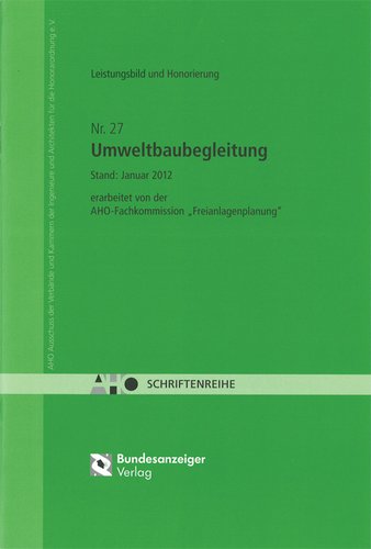 Umweltbaubegleitung Leistungsbild und Honorierung Das Heft Nr. 27 wurde von der AHO-Fachkommission Freianlagenplanung erarbeitet. Es kann beim AHO e.V. für 14,80 Euro inkl. gesetzl. MwSt. zzgl. Versandkosten bestellt werden unter www.aho.de/schriftenreihe