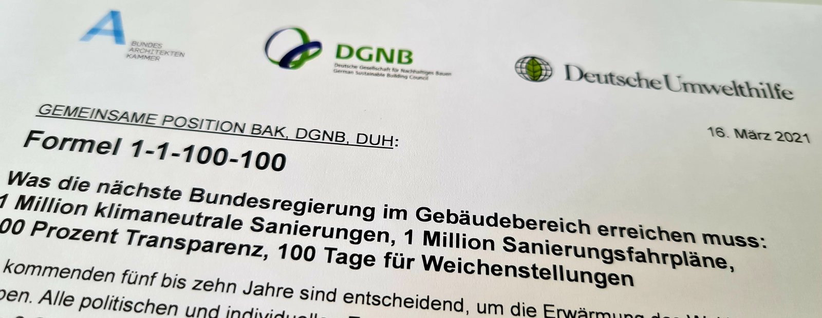 Die kommenden fünf bis zehn Jahre sind entscheidend, um die Erwärmung des Weltklimas zu stoppen. Deshalb fordern Deutsche Umwelthilfe (DUH), Deutsche Gesellschaft für Nachhaltiges Bauen (DGNB) und die Bundesarchitektenkammer (BAK) ein Sofortprogramm für den Gebäudebereich.