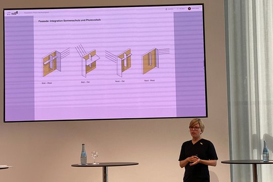 Angie Müller von Behnisch Architekten stellte drei nachhaltig realisierte Projekte vor. Der "Denkmehraufwand" für Planer zu Beginn, bis hinein in die Entwurfsmethodik, lohne sich. Müller spannte den Bogen weit. Behnisch Architekten hat die – gesamtheitlich betrachtet – größten CO2-Treiber in ihren Büros ermittelt: Der Weg zur Arbeit, Reisen insgesamt. Das führe zur Frage: Was brauchen wir ("Suffizienz")? Sind kleine Räume und kurze Distanzen die Antwort? Müller appellierte an die Kolleginnen und Kollegen: "Wir können auch in Städten nachhaltig leben, darin steckt ein großes Potenzial." Volker Auch-Schwelk, Vorsitzender der AKBW-Strategiegruppe Klima | Energie | Nachhaltigkeit, plädierte dafür, als Planungsbranche ein Zeichen zu setzen und "mehr zu tun als der Gesetzgeber", etwa Lebenszyklen von Gebäuden berechnen, was dank einer Vielzahl von Tools gut machbar sei. Auch-Schwelk stellte auch einen Vergleich an: "Die Bewältigung der Akut-Krise Corona ist eine Blaupause. Wir sollten bei der langfristigen Krise Klimawandel genauso konsequent handeln."