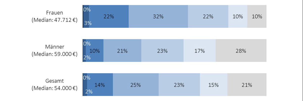 Im Mittel verdienen weibliche Architekten deutlich weniger (47.712 Euro) als ihre männlichen Kollegen (59.000 Euro). Das mittlere Jahresgehalt weiblicher Angestellter beträgt damit nur 80% des Jahresgehalts männlicher Angestellter.