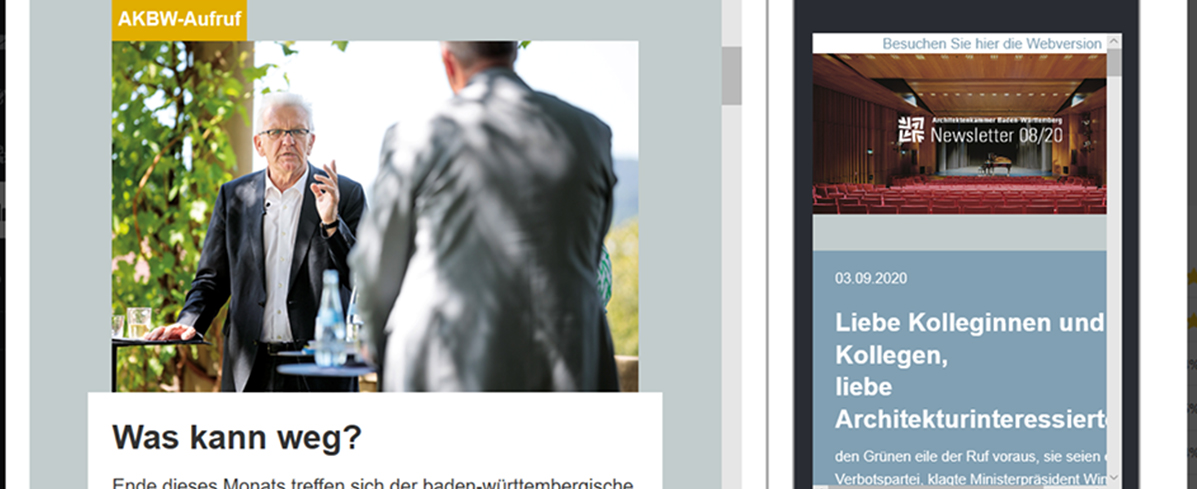 Die AKBW wandte sich über ihren Newsletter an die Mitglieder und bat um Hinweise zum Bürokratieabbau. Den Anstoß gab der "Sommerliche Talk" mit Ministerpräsident Kretschmann. Welche Vorschriften und Regelungen sind für Sie hinderlich, welche sind aus Ihrer Sicht lässlich und welche gar schädlich, um bestimmte Zielsetzungen zu erreichen? Oder eben kurz: Was kann weg? So lautete die Frage in die Kammer hinein. Die Gesprächseinladung des Ministerpräsidenten, die neue Empfänglichkeit für die brennenden Themen der Architektur und Baukultur, ist aus Sicht von AKBW-Präsident Markus Müller ein gutes Zeichen. "Wir als Architektenkammer Baden-Württemberg sind die Experten und wir werden gefragt. Termine wie die im Staatsministerium sind eine große Chance, Einfluss zu nehmen über die institutionalisierten Beteiligungsformate hinaus."