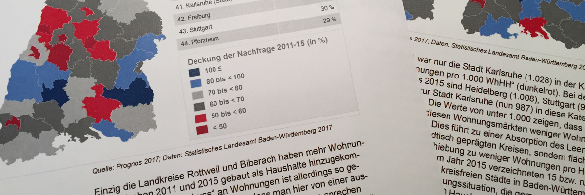Auch auf Drängen der Architektenkammer hat die L-Bank im Rahmen der Wohnraum-Allianz eine Wohnraumbedarfstudie beauftragt. Die im Oktober 2017 veröffentlichte Prognos-Studie schafft mit einer fundierten, regional differenzierten Untersuchung eine allgemein akzeptierte Gesprächsgrundlage.