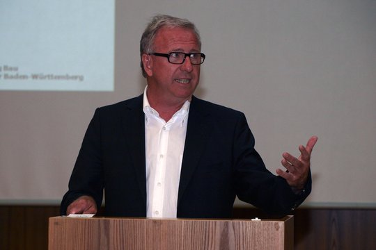 Wolfgang Riehle zog bei der Veranstaltung in Stuttgart gleich beim ersten Thema den Trumpf aus der Tasche und beglückwünschte alle Anwesenden zur neuen HOAI 2013, die just taggleich im Bundesanzeiger veröffentlicht wurde. Mit großem Beifall wurde diese Nachricht goutiert, die eine durchschnittliche Honorarerhöhung von 17 Prozent mit sich bringen wird. In diesem Zusammenhang erhofft Riehle aber auch vernünftigere Gehälter für die angestellten Kolleginnen und Kollegen, insbesondere auch für Berufsanfänger.