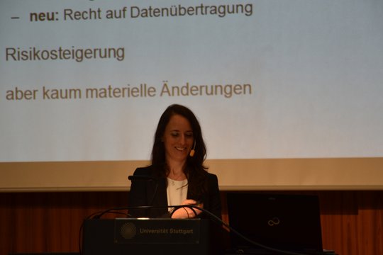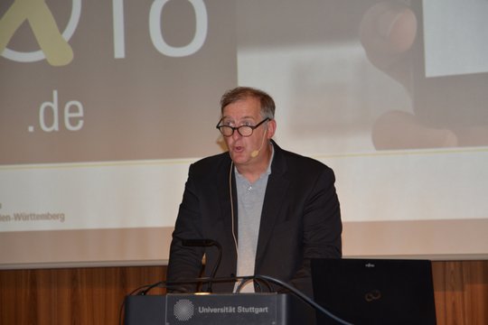 Im Foyer der Tiefenhörsäle an der Universität Stuttgart gab es in der Pause Gelegenheit alte Bekannte, ehemalige Mitstudierende und neue Kolleginnen und Kollegen zu treffen.