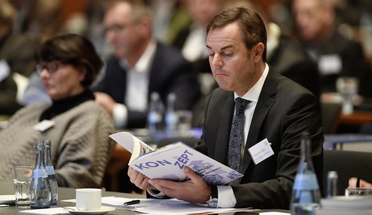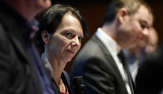Von links: Dr. Fred Gresens (Moderation), Kammerpräsident Markus Müller, Susanne Bay (Grüne),