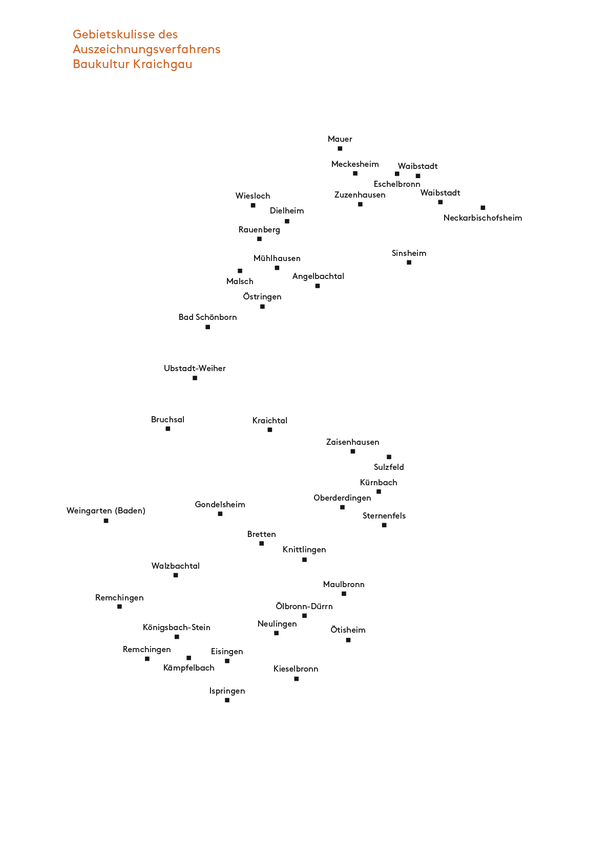 Die Architektenkammer Baden-Württemberg, Kammerbezirk Karlsruhe / Nordbaden, das Regierungspräsidium Karlsruhe und das Ministerium für Wirtschaft, Arbeit und Wohnungsbau Baden-Württemberg haben darum „Baukultur Kraichgau“ als gemeinsam getragenes Projekt im Rahmen der Landesinitiative Baukultur Baden-Württemberg gestartet.