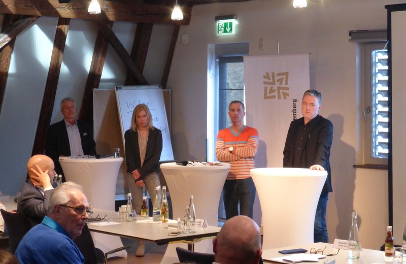 Nach Grußworten von Herrn Oberbürgermeister Johannes Arnold und Herrn Andreas Grube, Bezirksvorsitzender des Kammerbezirks Karlsruhe, Architektenkammer Baden-Württemberg, referierten Frau Angelika Thieme, Stadt Weinheim, Amt für Baurecht und Denkmalschutz und Herrn Manfred Busch, Regierungspräsidium Karlsruhe, Referat Raumordnung, Baurecht und Denkmalschutz – zwei in der Verwaltung und im Baurecht erfahrene Referenten –mit kurzen Referaten über das Thema und regten zur Diskussion an.