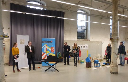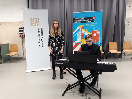 Der Kammerbezirk Karlsruhe lud im Rahmen der Vernissage zu einem Neujahrsempfang ein. Pia Gerzmann erläuterte den Schülerwettbewerb und Andres Grube informierte über Anstehendes im Bezirk. Gesang und Klaviermusik begleiteten die leider wenigen Gäste, die sich alle schon auf den Neujahrsempfang im nächsten Jahr freuen. Das Format soll etabliert werden.