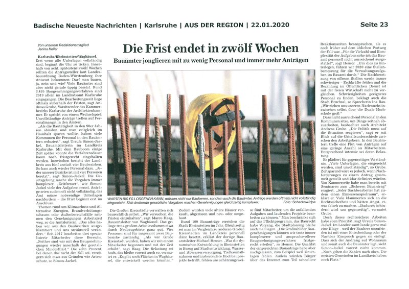 BNN Aus der Region vom 22.01.2020, die Veröffentlichung erfolgt mit freundlicher Genehmigung der Badische Neueste Nachrichten