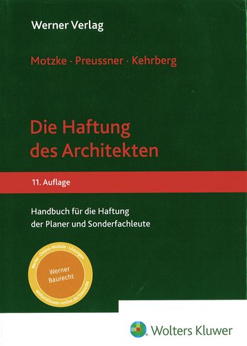 Die Haftung des Architekten Handbuch für die Haftung der Planer und Sonderfachleute Gerd Motzke, Mathias Preussner, Jan Kehrberg (Hrsg.), Werner Verlag, 11. Auflage, 219 x 164 mm, 1.204 Seiten, gebunden, ISBN 978-3-8041-5293-9, 119 Euro
