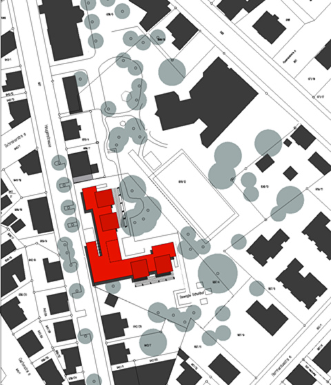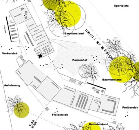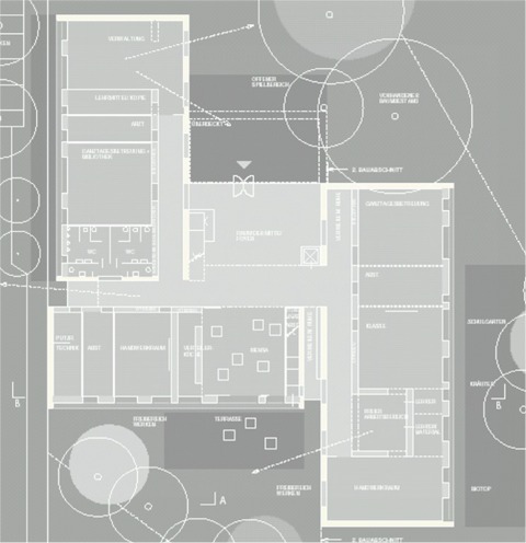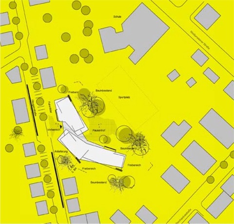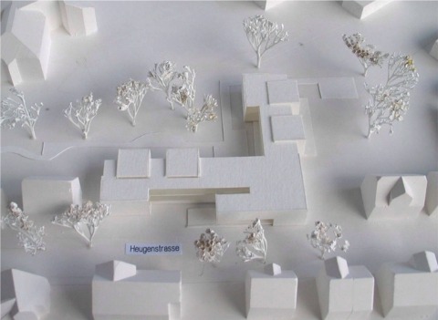 Der Entwurfsansatz versucht sich mit einem gegliederten, zusammenhängenden Baukörper den städtebaulichen Randbedingungen der Heugenstrasße harmlos anzupassen und durch eine Winkelanordung ordnend in den Städtebau des Grünbereiches einzugreifen, was positiv bewertet wird. Dabei folgt diese Entwicklung des Baukörpers dem inneren Aufbau der Organisation der Schule. Erfreulich sensibel wird mit dem Baumbestand umgegangen. Der Rampenzugang von der Heugenstraße als Haupterschließung ist großzügig und markant angelegt was von der Treppenerschließung zum Haupteingang nicht behauptet werden kann. Die Winkelerschließung des Innenraums von Haupteingang aus stellt zusammen mit der Mensa und dem Ausblick in den Innen-Grünbereich eine sympatische räumliche Entwicklung dar. Die Erschließungswege sind selbstverständlich und klar angelegt. Der Küchentrakt mit eigener Andienung ist gut, seine Funktionsfähigkeit wird durch den Höhenunterschied zur Mensa etwas gemindert. Die Funktionseinheiten Klassen, Betreuung und freies Arbeiten, inklusiv der Freiklassen vor den Klassenzimmern, bilden anpruchsvolle gleichwertige wiederkehrende Elemente im Organisationsgefüge. Die im Obergeschoß angelegte Nachbarschaft von Klasse und Handwerk könnte bezüglich Lärmentwicklung zu Schwierkeiten führen. Die Verwaltungseinrichtungen liegen vor allem wegen des zu erwartenden Besucherverkehrs wohl gut erreichbar, aber im Obergeschoß unpraktisch. Die konstruktiven Ansätze sind einfach und klar und lassen keine baukonstruktiven Schwierigkeiten erwarten. Die ökologische und energetischen Vorschläge folgen im Wesentlichen den augenblicklichen Standards. Die Architektursprache – die Fassadengestaltung – ist geprägt von maßlichem Ordnungbestreben, lassen aber im jetzigen Stadium keine endgültige Beurteilung zu. Besonders gelungen ist die bauabschnittsweise Gliederung. Sie läßt keinen torsoartigen Bestand im 1. Ba zu und wird durch den 2. BA zu einer neuen Einheit. Der Entwurf liegt in seinen Kennwerten – Quadratmeter – im mittleren, im umbauten Raum im unteren Bereich.Insgesamt stellt der Entwurf in Städtebau und Objektplanung einen geordneten gut überlegten beitrag zur gestellten Aufgabe dar. Das Programm wurde in anpruchsvolle räumliche Zusammenhänge übersetzt.