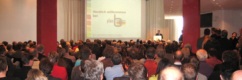 Nachdem vor zehn Jahren bereits der Etat für die vom Wirtschaftsministerium Baden-Württemberg geförderten Büroberatungen zum Ende des Sommers ausgeschöpft war, suchte die Landesgeschäftsstelle nach einem Alternativangebot und erfand Plan B. Mit dieser Veranstaltung, die Architektinnen und Architekten Zukunftsstrategien aufzeigen und zum Beschreiten neuer Wege motivieren sollte, wurde 2006 ein neuer Weg der Informationsvermittlung beschritten.
