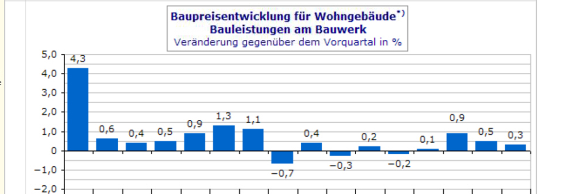 Der Baupreisindex spiegelt die Entwicklung der der von den Bauherren tatsächlich gezahlten Preise für den Neubau und die Instandhaltung von Bauwerken wider. Die Preisindizes für die Baupreisentwicklung in Baden-Württemberg werden vom Statistischen Landesamt veröffentlicht. Beim Statistischen Bundesamt sind die Kennwerte für den Bundesdurchschnitt abrufbar.