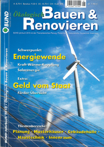Das BUND-Jahrbuch liefert für die Bereiche Planung, Gebäudehülle, Haustechnik und Innenraum eine erste Übersicht dessen, was möglich ist. Die weiterführenden Literatur- und Internetangaben erleichtern die Vertiefung von einzelnen Themen.