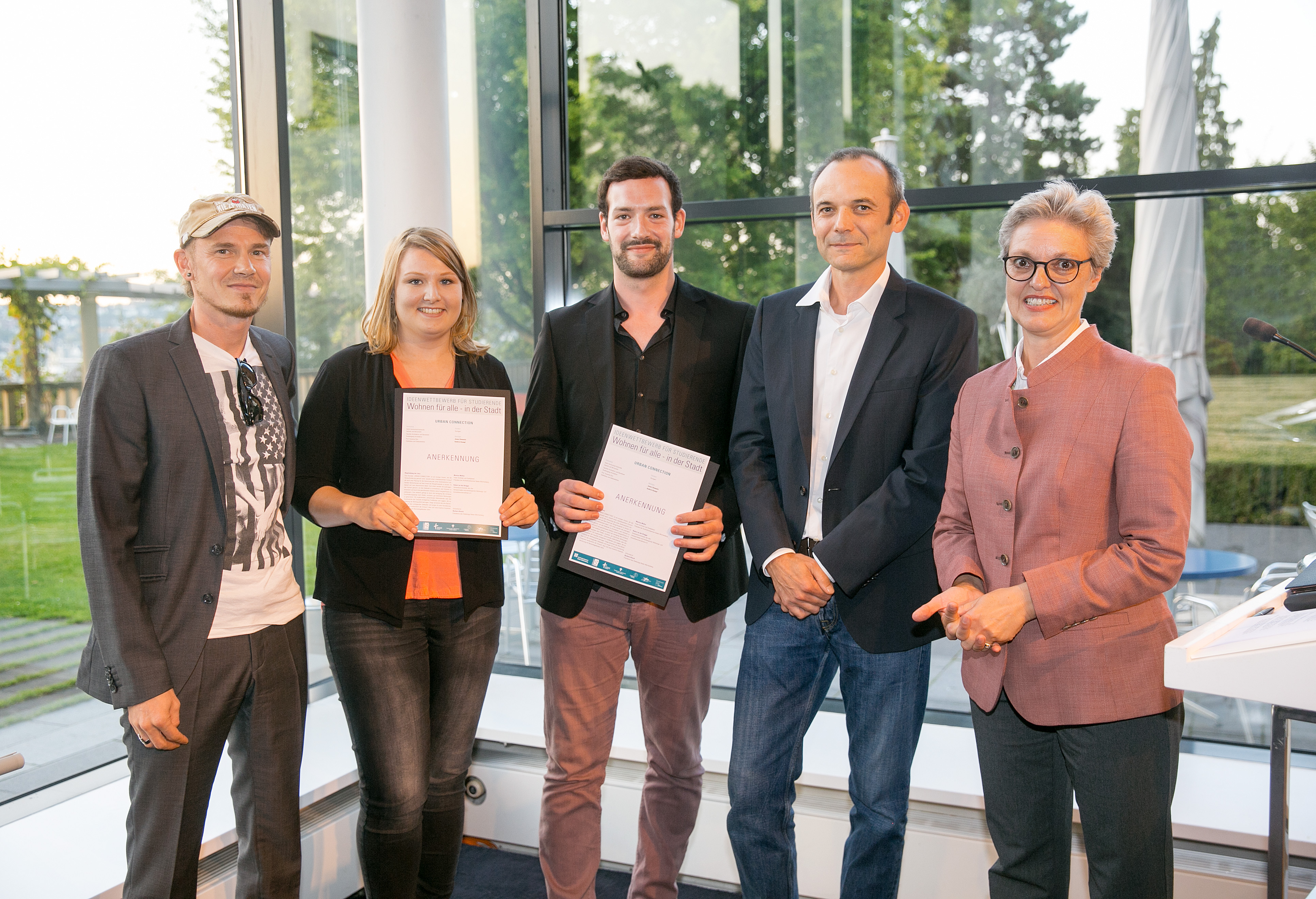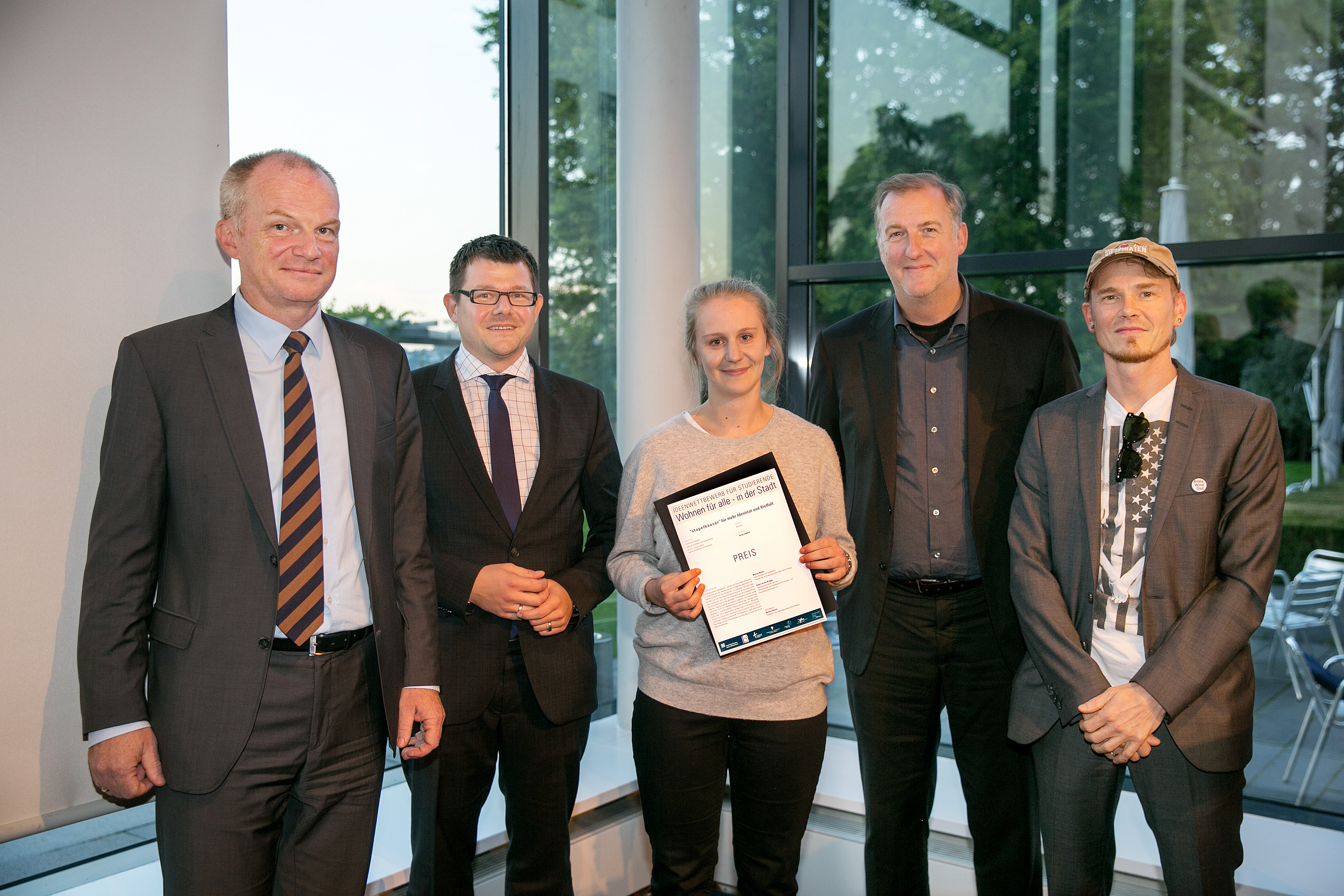 "Wir brauchen bezahlbaren Wohnraum – nicht irgendwo, sondern in den Städten. Wohnen heißt aber nicht nur Raum, Licht, Luft. Wohnen heißt auch zusammen leben: Die Planungsaufgabe 'Wohnungsbau' ist enorm vielfältig. Qualität entsteht aus der Verarbeitung von Umfeldbedingungen, Nutzerbedürfnissen und einer differenzierten Sozialstruktur. Wenn dann noch die 'Lust' am Wohnen und Nachbarschaften spürbar wird, entstehen gute, dauerhaft brauchbare Quartiere", betonte Markus Müller, Präsident der Architektenkammer Baden-Württemberg, die politische Relevanz des Wohnungsbaus bei der Preisverleihung zum Studierendenwettbewerb "Wohnen für alle – in der Stadt" am 27. September im Haus der Architekten in Stuttgart. "Man kann sich auch spielerisch und humorvoll mit dem Thema 'Wohnen' auseinandersetzen: die Öffentlichkeit verblüffen und Impulse geben. Das zeigen die prämierten Arbeiten", so der Präsident stolz.