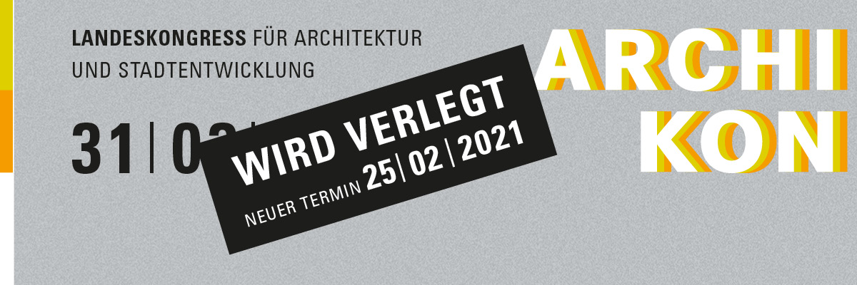 Die Architektenkammer Baden-Württemberg und die Messe Stuttgart haben vereinbart, ARCHIKON, den Landeskongress für Architektur und Stadtentwicklung, in das Frühjahr 2021 zu verschieben. ARCHIKON hätte am 31. März 2020 als Gastveranstaltung im ICS Internationales Congresscenter Stuttgart stattfinden sollen.