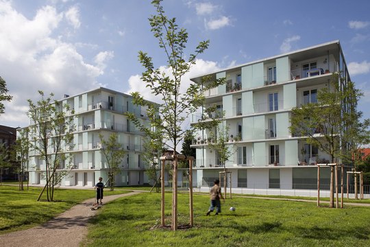 Das Sanierungsgebiet Albert-Schweitzer-Straße/Fröbelstraße in Lahr wurde aus einem ehemaligen militärischen Wohnstandort zu einem lebendigen, durchgrünten Wohnquartier entwickelt. Die insgesamt 67 Wohneinheiten bieten in Miete oder Eigentum Raum für unter-schiedliche Wohnformen in verschiedenen Lebensphasen. Gemeinschaftseinrichtungen, der zentrale, öffentliche Park und eine moderierte Stadtteilkonferenz sollen die neuen Bewohner untereinander und mit der umgebenden Bebauung vernetzen. Die hochwertige, städtische Architektur des Ensembles verleiht dem Ort eine unverwechselbare Identität. Das Projekt ist auszuzeichnen, weil es beispielhafte Voraussetzungen für eine nachhaltig gute Nachbarschaft bietet.
